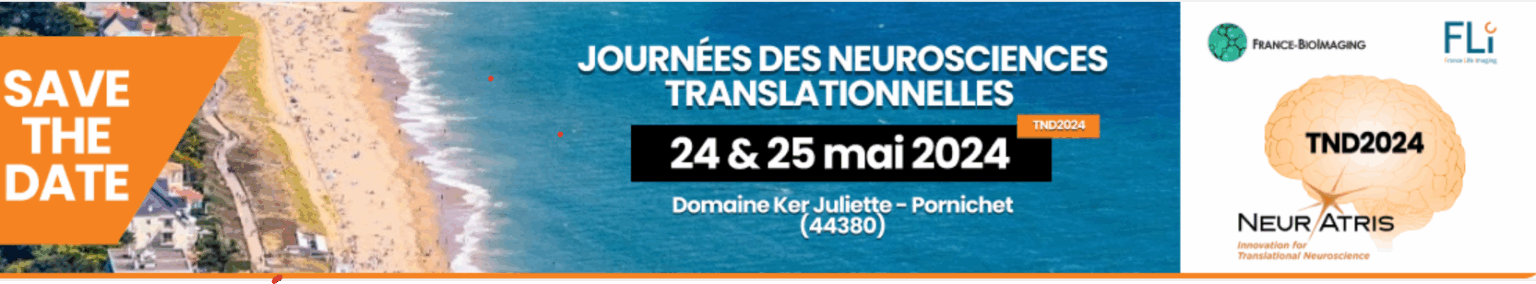 L’infrastructure de Recherche nationale NeurATRIS organise conjointement avec les Infrastructures de Recherche nationales France Life Imaging, FLI, et FRance BioImaging, FBI, la 5ième édition des Journées des Neurosciences translationnelles, NeurATRIS Translational neuroscience Days, du 24 au 25 mai 2024 au domaine Ker Juliette de Pornichet.