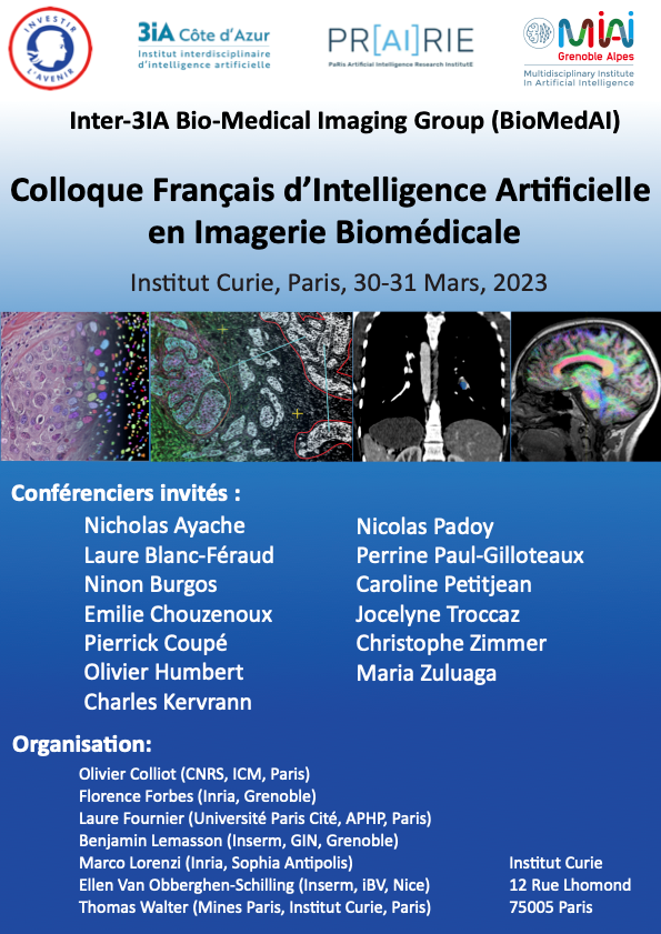 C’est avec grand plaisir que nous vous annonçons la première édition du Colloque Français d’Intelligence Artificielle en Imagerie Biomédicale (IABM 2023), co-organisé par les Instituts 3IA de Grenoble (MIAI), Nice (3IA Côte d’Azur) et Paris (PRAIRIE), qui aura lieu les 30 et 31 mars à l’Institut Curie à Paris (5ème arrondissement).