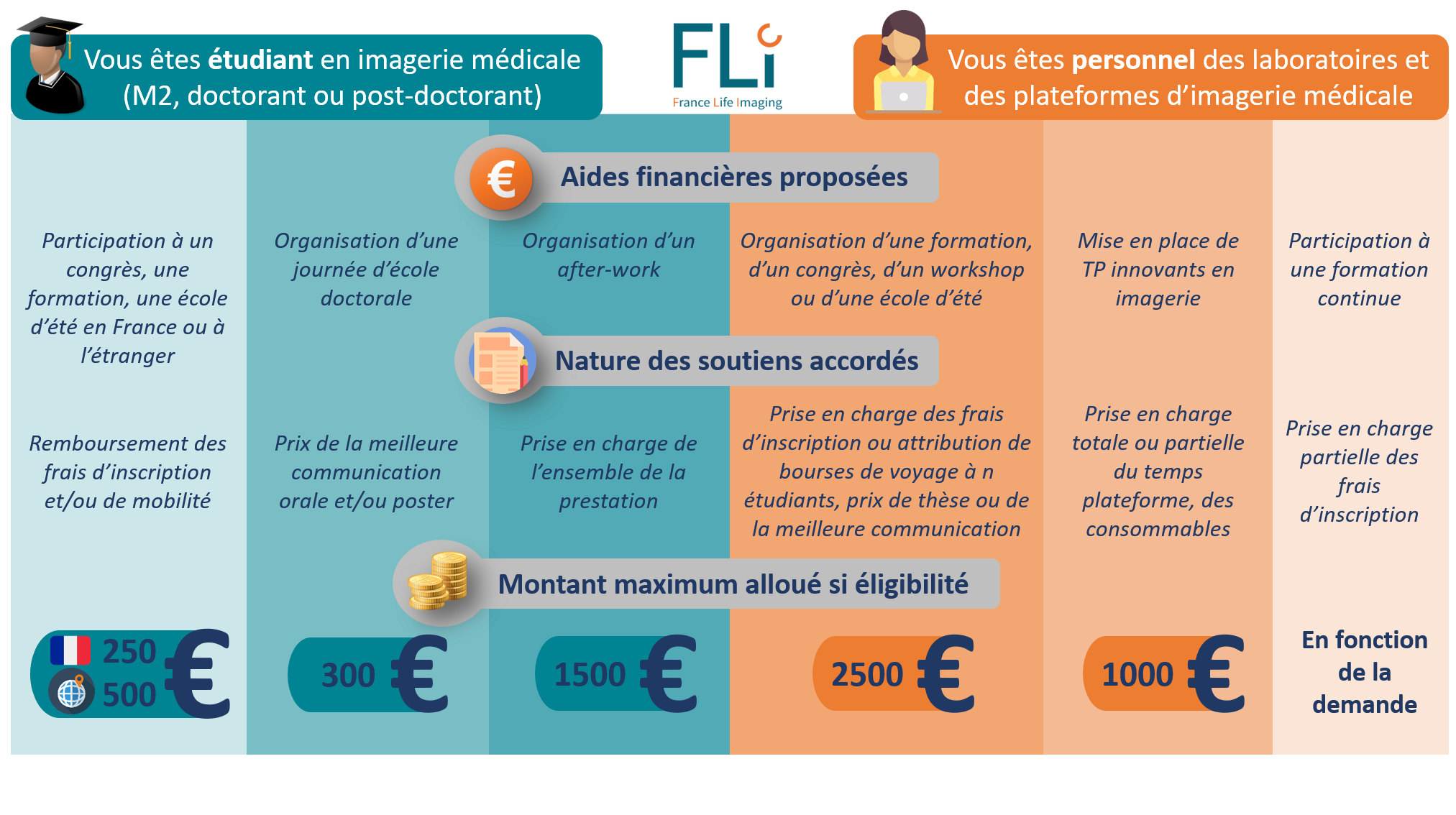 En plus de piloter des actions de formation continue en partenariat avec l’INSTN, le Réseau Formation de FLI propose un certain nombre de soutiens à destination des étudiants et des personnels. Chaque demande reçue est examinée en comite de pilotage du RF dont les réunions ont lieu quatre fois par an : en mars, en juin, en septembre et en décembre.